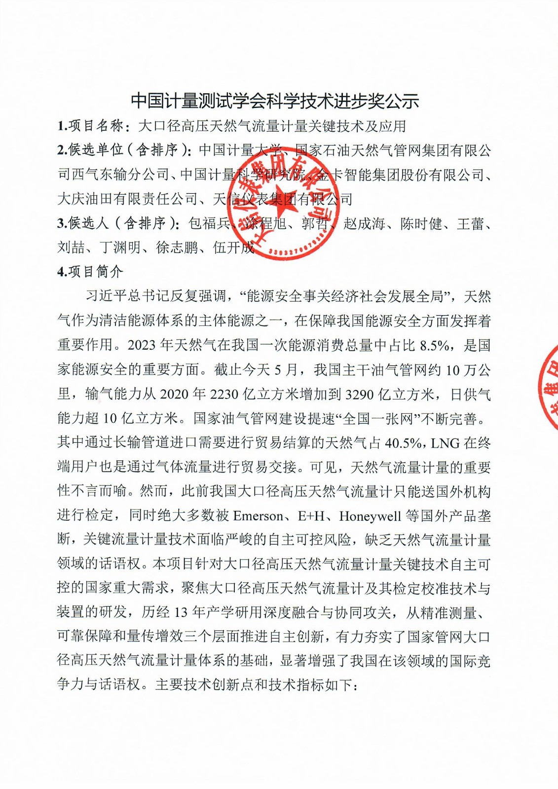 中國計(jì)量測試學(xué)會(huì)科學(xué)技術(shù)進(jìn)步獎(jiǎng)公示